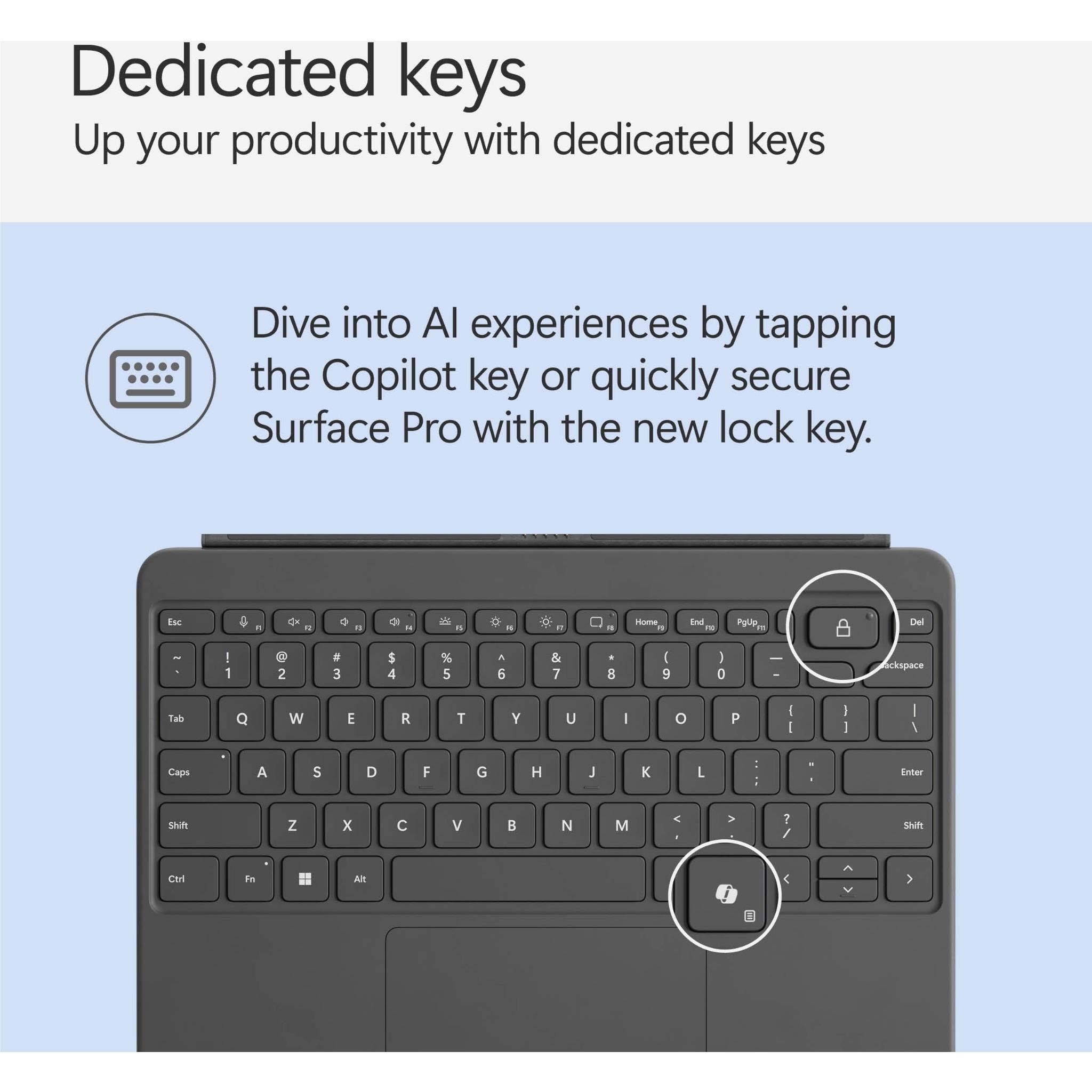 Dedicated keys for Copilotv. microphone mute. snipping. Windows shortcuts. media controls. screen brightness and lock key