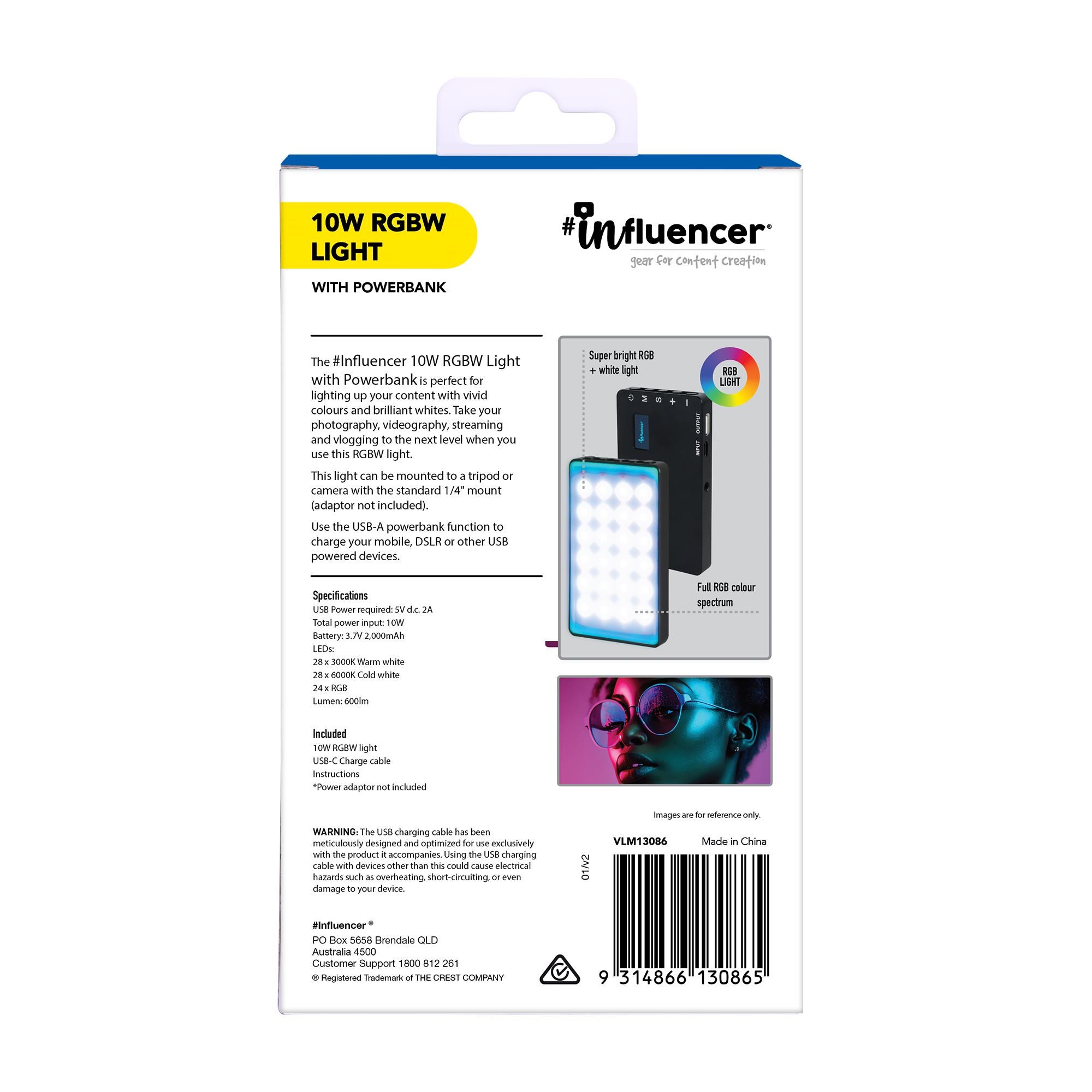 Carry strap and USB charge cable included