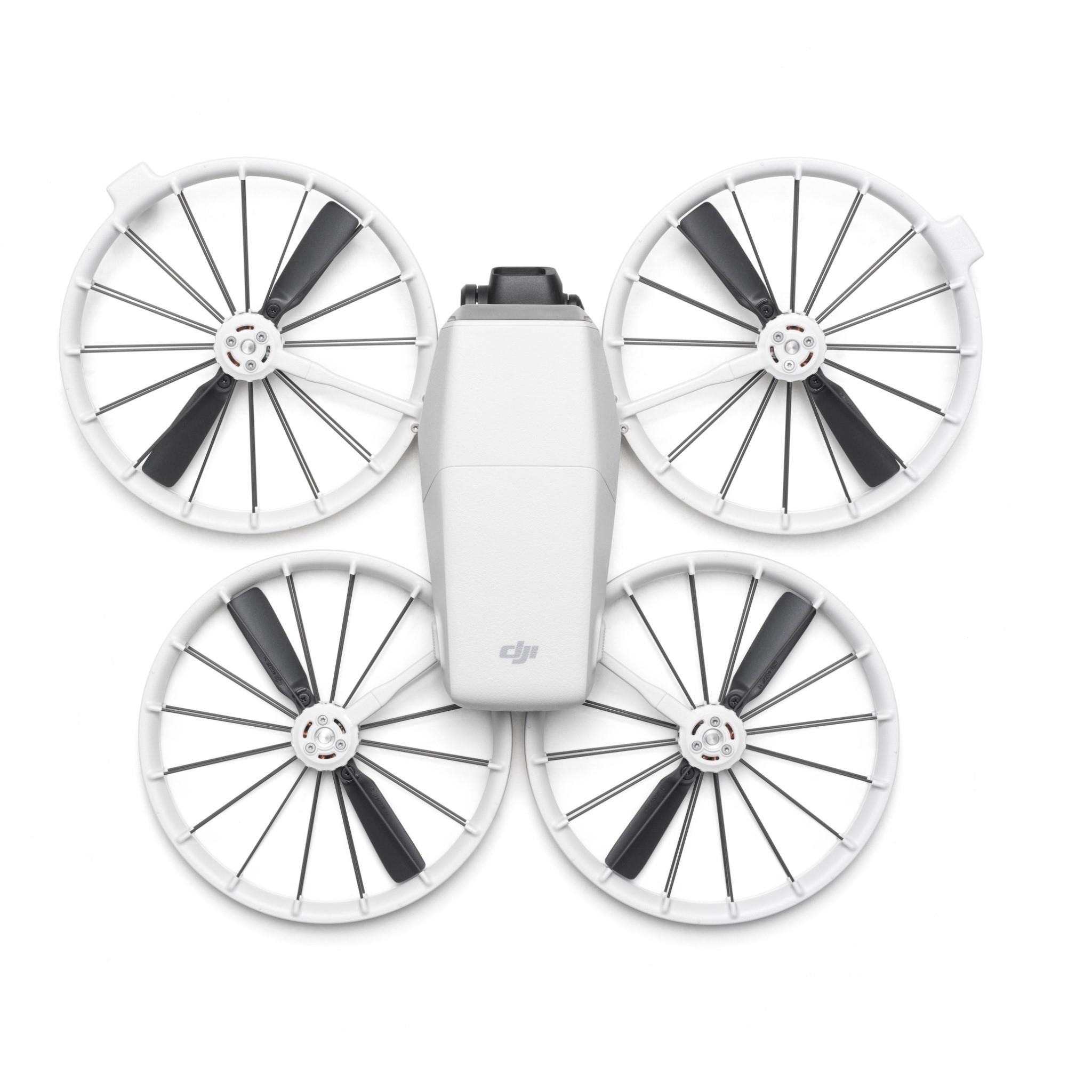 DJI Flip is DJI's first drone equipped with a foldable full-coverage propeller guard. [5] The guard features a carbon fibre support structure that is only 1/60 the weight of traditional Polycarbonate (PC) material while maintaining the same stiffness. This lightweight and durable design provides comprehensive protection. ensuring that even beginner pilots can navigate the skies with confidence.