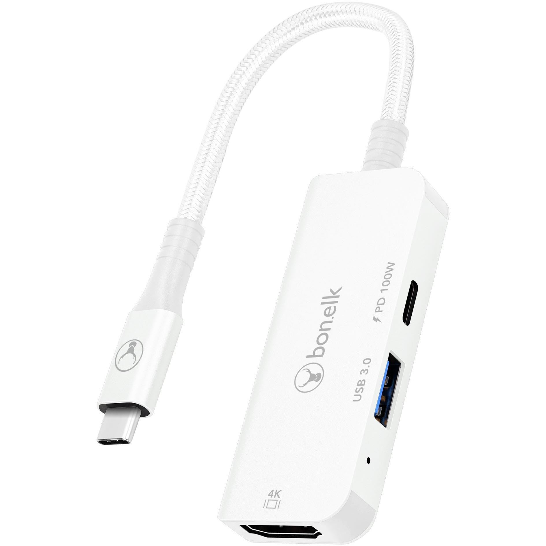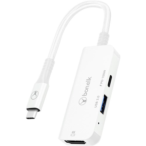 The Bonelk USB-C 3in1 Multiport Hub is a great solution to add 4K HDMI. USB-C PD 100W charging & USB-A 3.0 input to your laptop. smart device or desktop computer. Built using high quality materials and intelligent electronics. Features 1x 4K HDMI / USB-C 100W PD and USB-A 3.0 port that supports 5Gbps transfer speeds. encased in a premium grade aluminium housing.