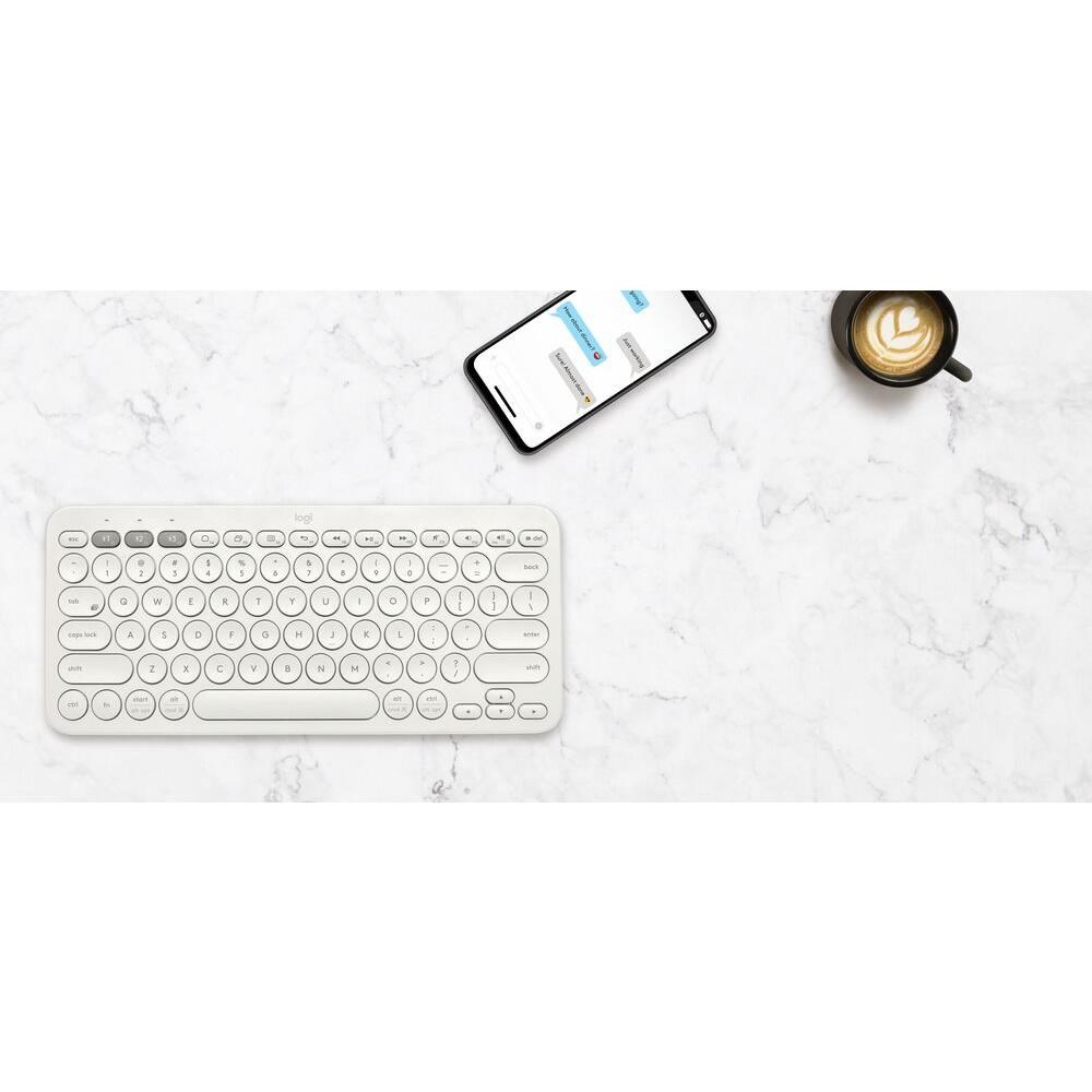 The Logitech® K380 Multi-Device Bluetooth® keyboard makes any space minimalist. modern. and multi-device. letting you type on your smartphone. tablet. and more.* Connect with up to three Bluetooth-enabled devices simultaneously and switch instantly between them. The K380 Multi-Device is compact and lightweight. You can type on the device of your choice—anywhere. It automatically detects your device. maps keys. and provides a familiar typing experience with all your favourite shortcuts. So. you can own your space on any device. anywhere. Two years of battery life** virtually eliminates power concerns. You may even forget the keyboard needs batteries!