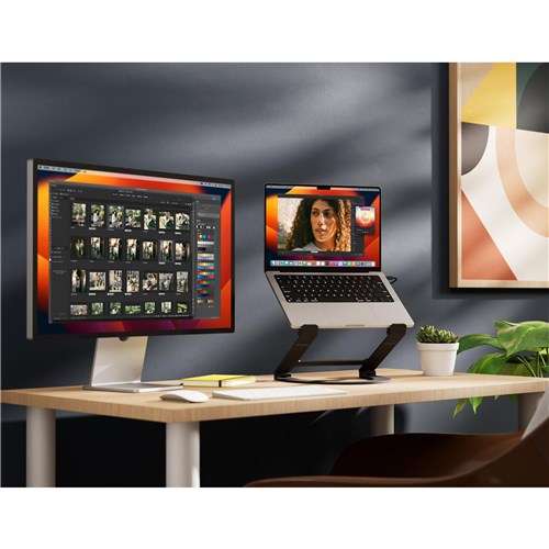 Curve Flex elevates your screen up to 56 cm high. so your MacBook/Laptop camera is eye-level for video calls. Have a dual-screen setup? Curve Flex has the reach to align your MacBook/Laptop screen with external monitors like the 27-inch Apple Studio Display.