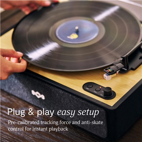 With built-in speakers. your turntable delivers instant. powerful sound—no need for extra equipment. Just plug in and play to enjoy your vinyl records anytime. anywhere.