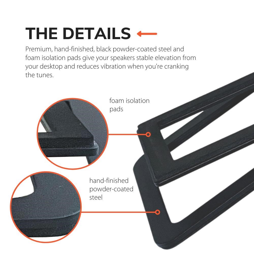 Crafted with premium. hand-finished powder-coated steel and foam padding. the DS1Ms are built to support your speakers and your passion for music. They reduce surface vibration and provide the stability needed for high-quality audio performance.