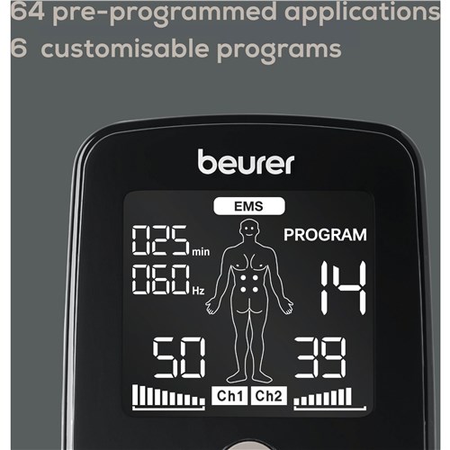 The Beurer EM1R – Digital EMS/TENS device: Luxe Edition features high-performance. all natural therapy options coupled with tremendous value. bundled into a luxurious colour casing.