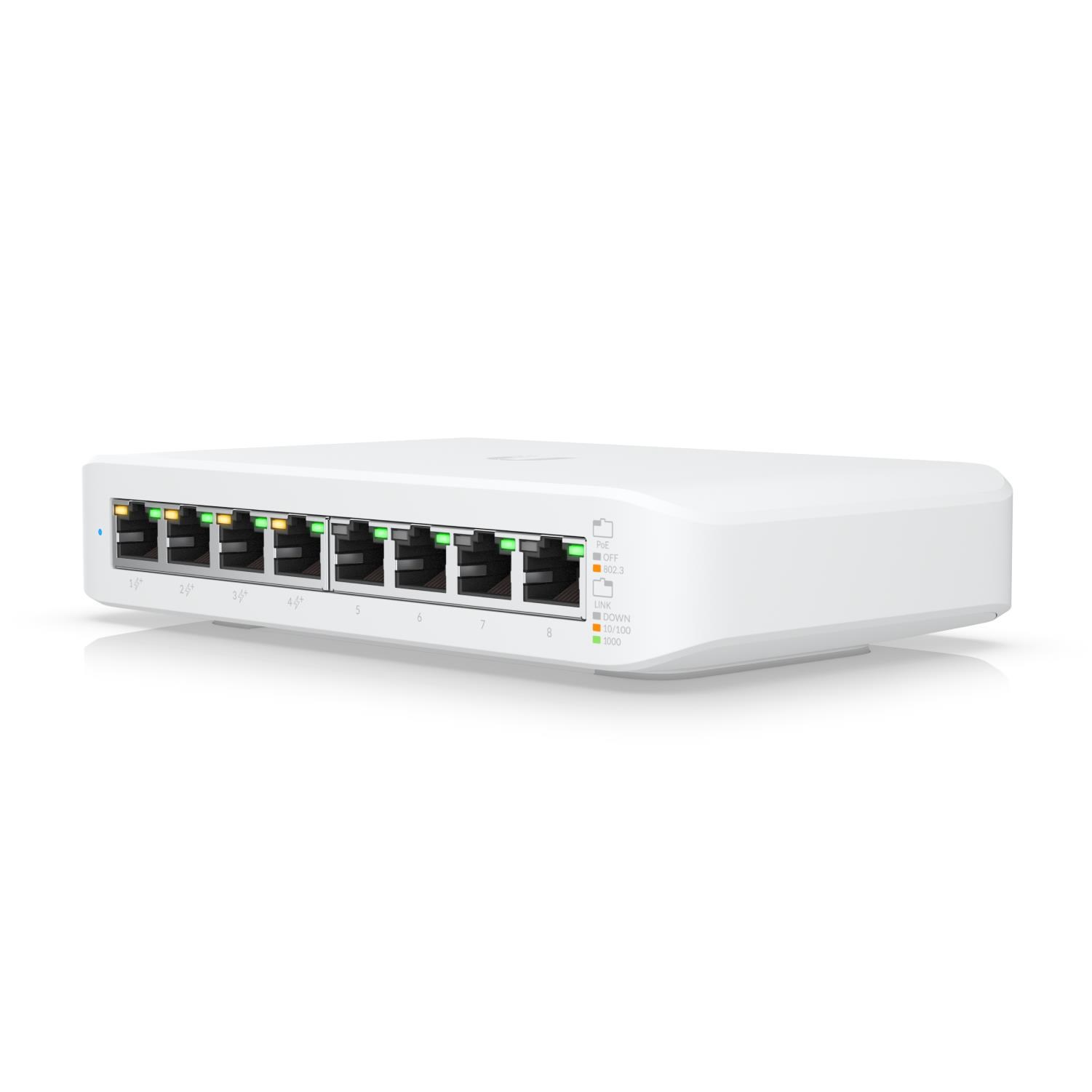 Ubiquiti USW-LITE-8-POE UniFi Switch USW-Lite-8-POE/4x PoE Output Ports/52W PoE Supply/Fanless/Wall Mount Kit Included