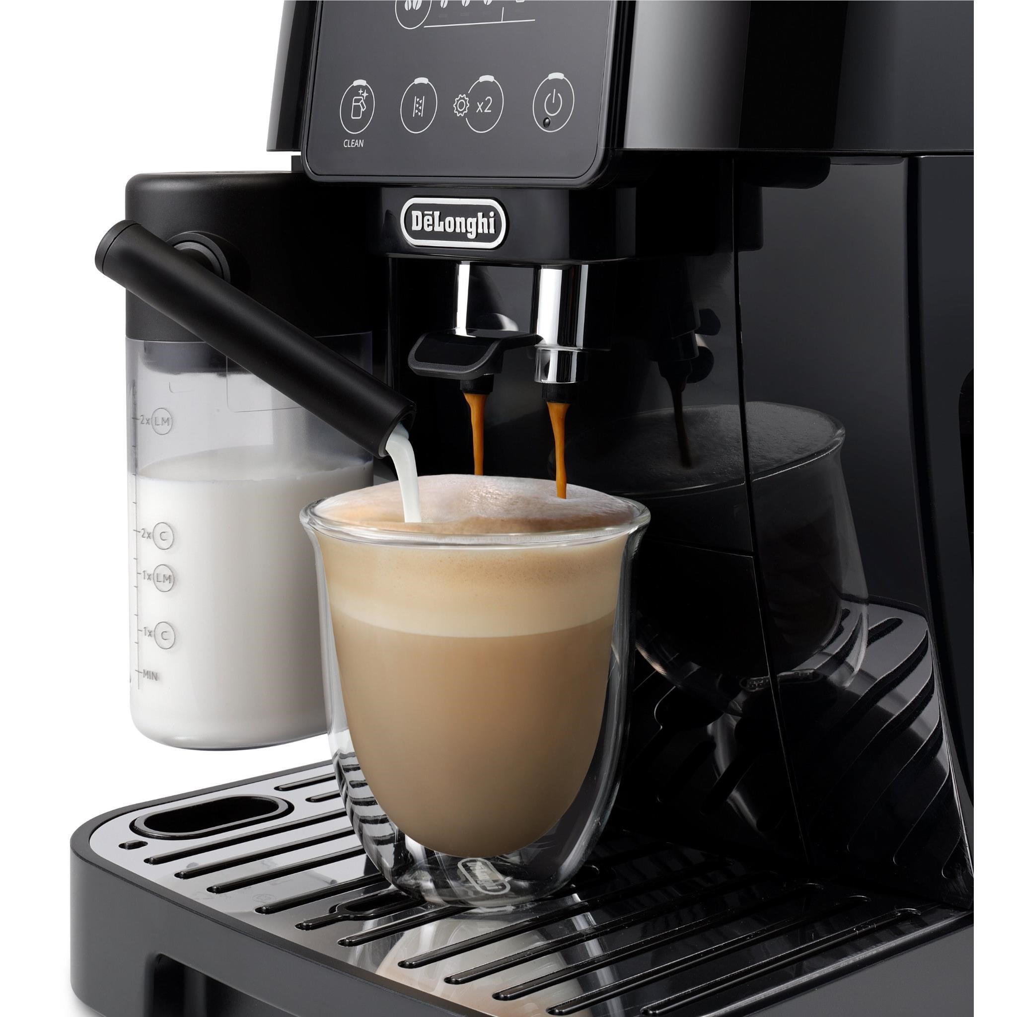 Enjoy quality coffee with Magnifica Start with Milk. an automatic coffee machine that is reassuringly simple to use and maintain. Enjoy rich aromas and delicious flavours from fresh coffee beans. as well as hot. smooth textured milk. for café quality coffee. in the comfort of your home. Choose from 4 one touch coffee recipes. make your selection through the user friendly interface. and savour the flavour with every sip. It is always easy to enjoy quality coffee. the way you like it. with a De’Longhi coffee machine. Perfetto!