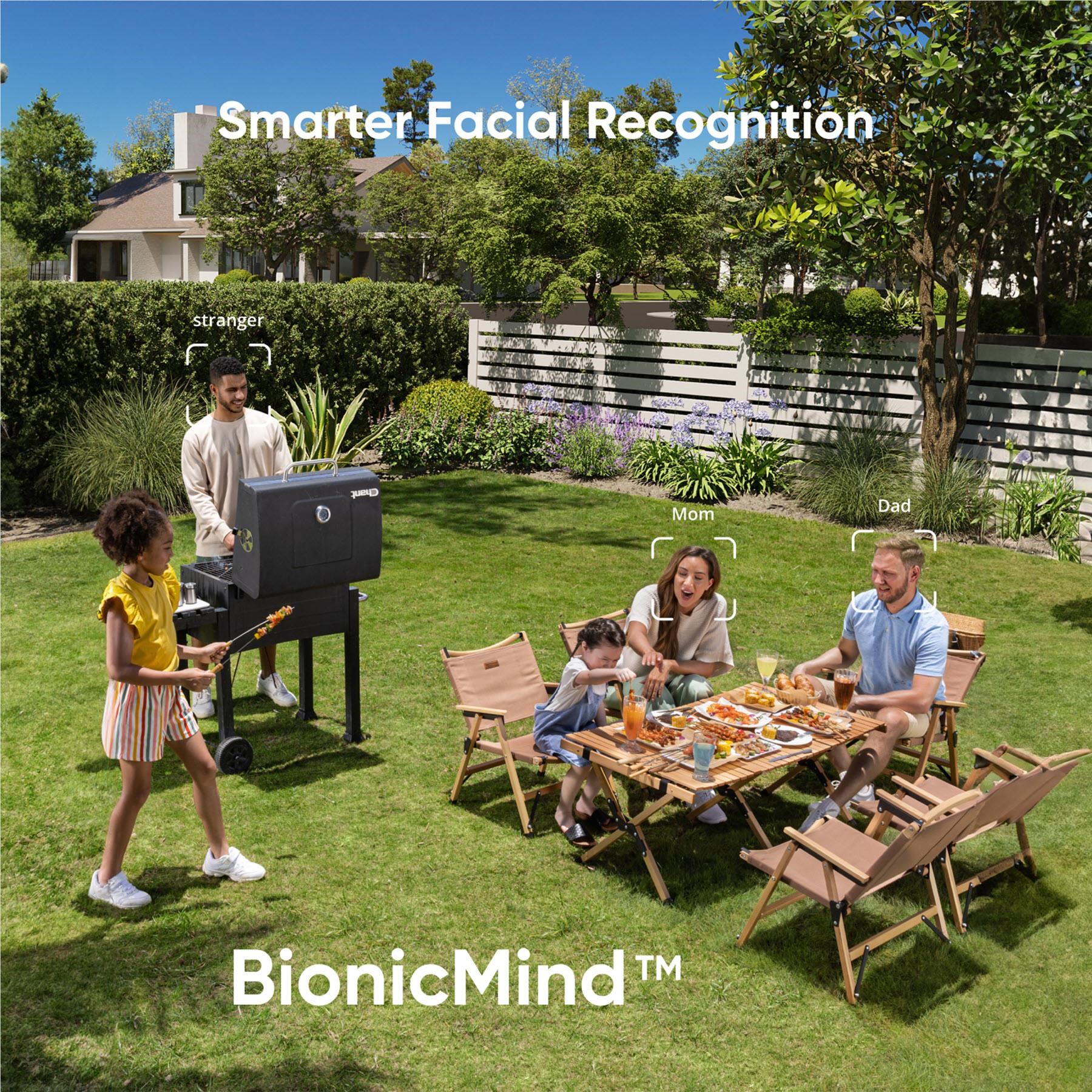 AI alerts you of anyone in your yard. whether family. a courier. or a stranger. Connect to HomeBase 3 for individual facial recognition.