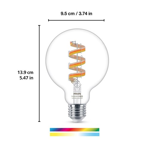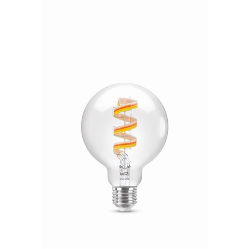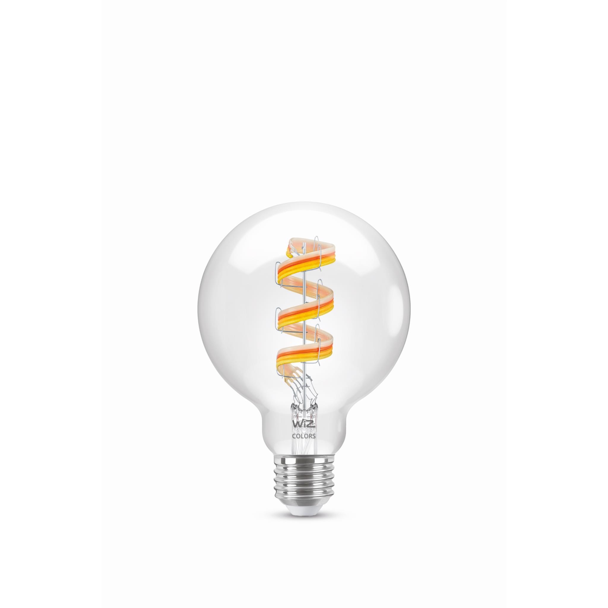 With these dimmable. full-colour WiZ filament bulbs. standard isn’t so standard any more. WiZ filament bulbs add a decorative touch even when they’re turned off—but they’re positively enchanting when you turn them on. Millions of colors and shades of white from cozy to cool. all in the familiar bulb shape that you know and love. Enjoy the classic look of vintage incadescent filament bulbs while reaping the energy-saving benefits of LED. Wi-Fi controllable. of course. using the WiZ app. WiZ remote. or your voice.