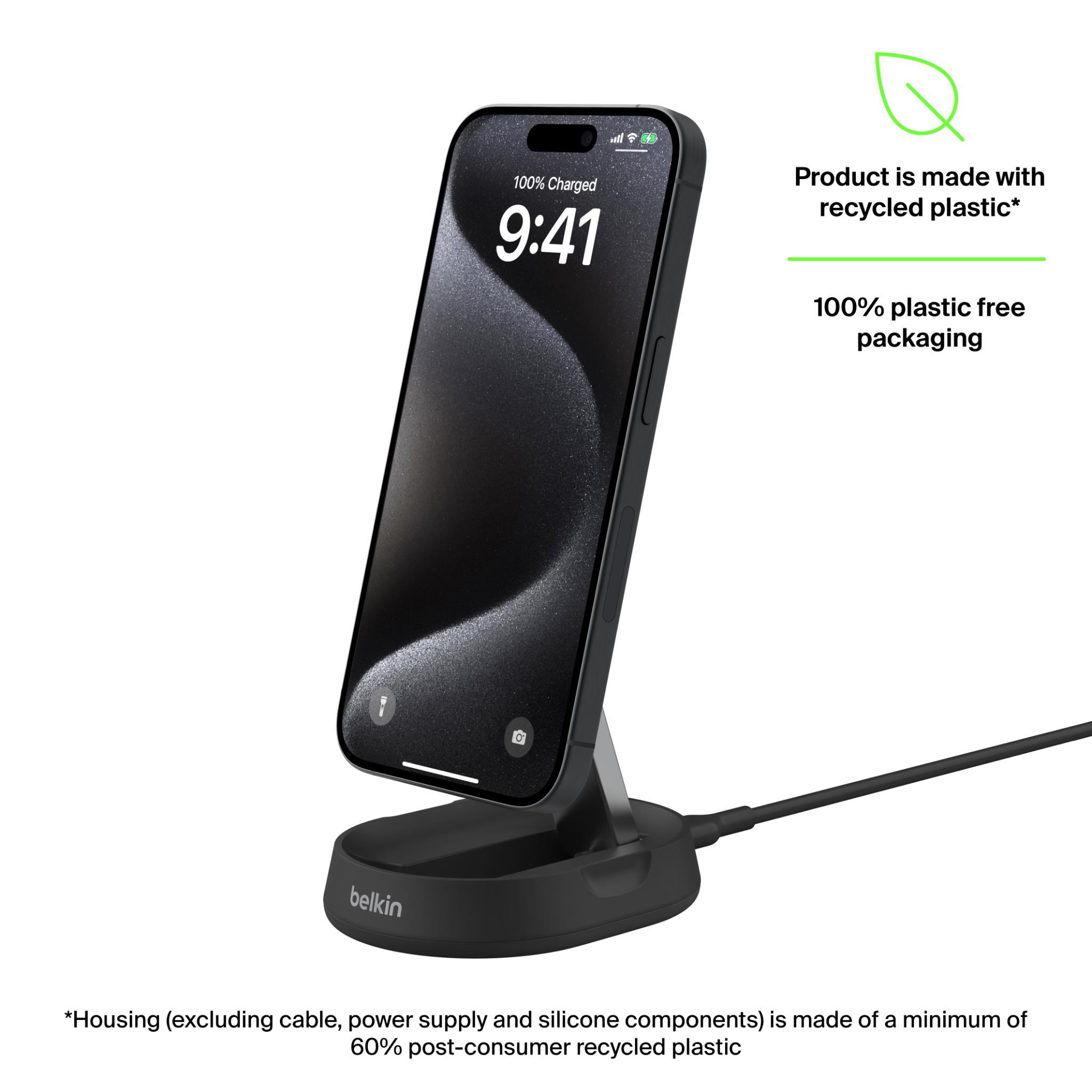 Enjoy fast wireless charging benefits of Qi2 with up to 15W of power for iPhone 15 and other Qi2-enabled devices. Qi2 also uses energy more efficiently to safeguard your device’s battery life.