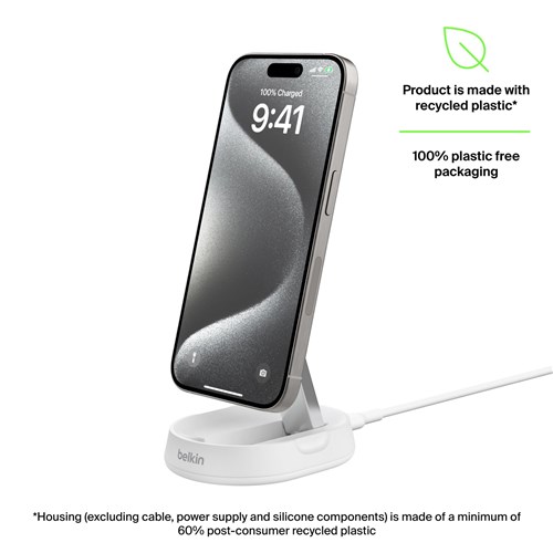 Fast charge your iPhone or other Qi2-compatible device up to 15W. Qi2 technology optimizes energy usage and safeguards your device's battery life. Use the adjustable tilt in either pad or stand mode. Apple users can take advantage of Standby compatibility.