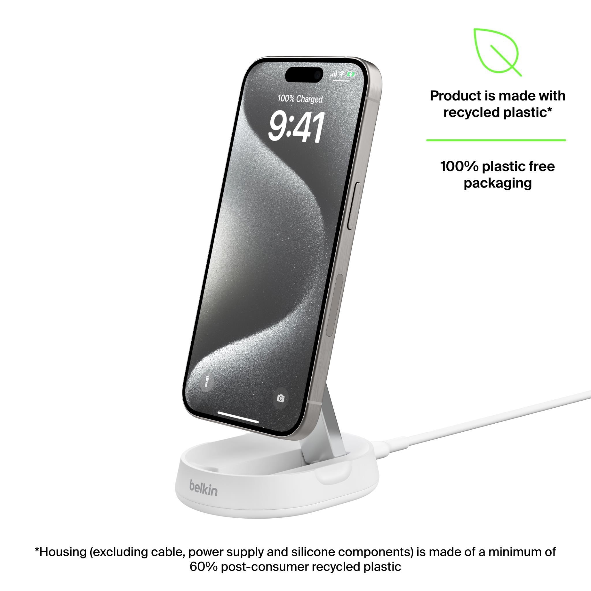 Enjoy fast wireless charging benefits of Qi2 with up to 15W of power for iPhone 15 and other Qi2-enabled devices. Qi2 also uses energy more efficiently to safeguard your device’s battery life.