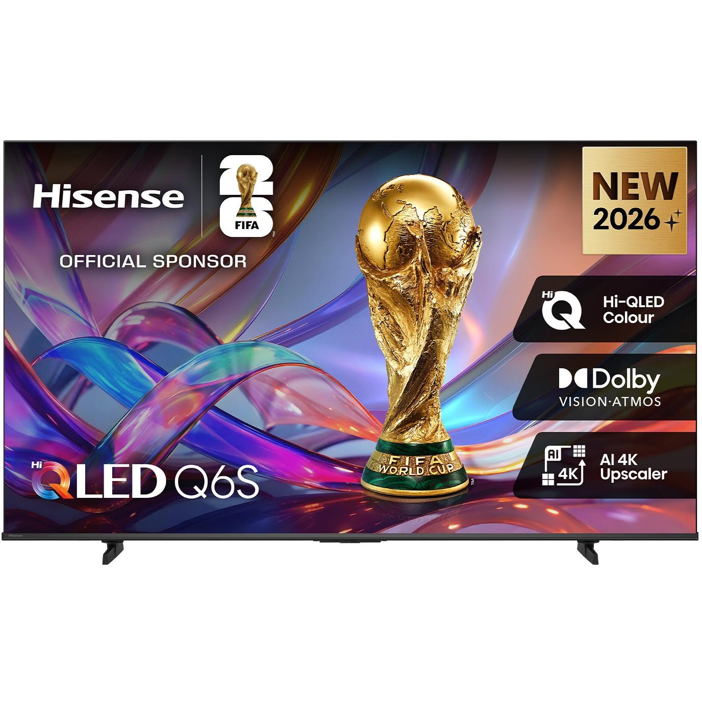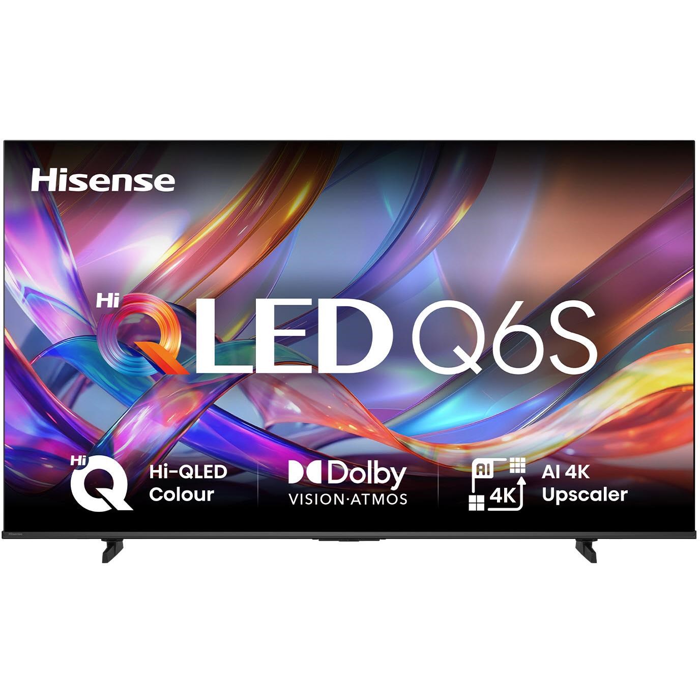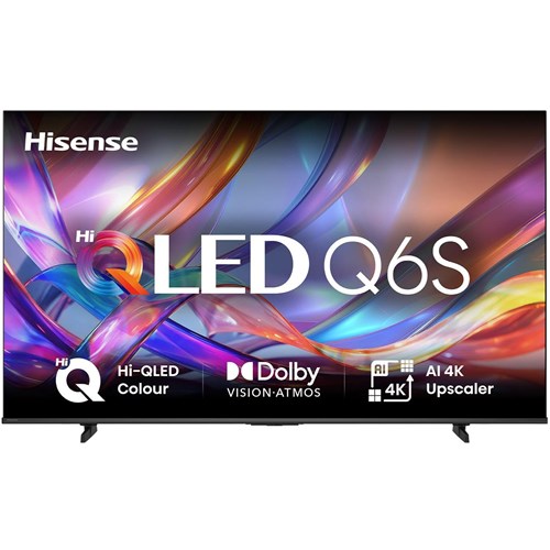 From weekend footy to movie nights. the Hisense Q6S TV brings entertainment to life. Hi-QLED Colour delivers vibrant. lifelike shades. while Dolby Vision and Dolby Atmos create a cinematic viewing experience. AI 4K Upscaler sharpens and enhances content. and AI Smooth Motion keeps fast action clear and fluid for smoother. more enjoyable viewing.