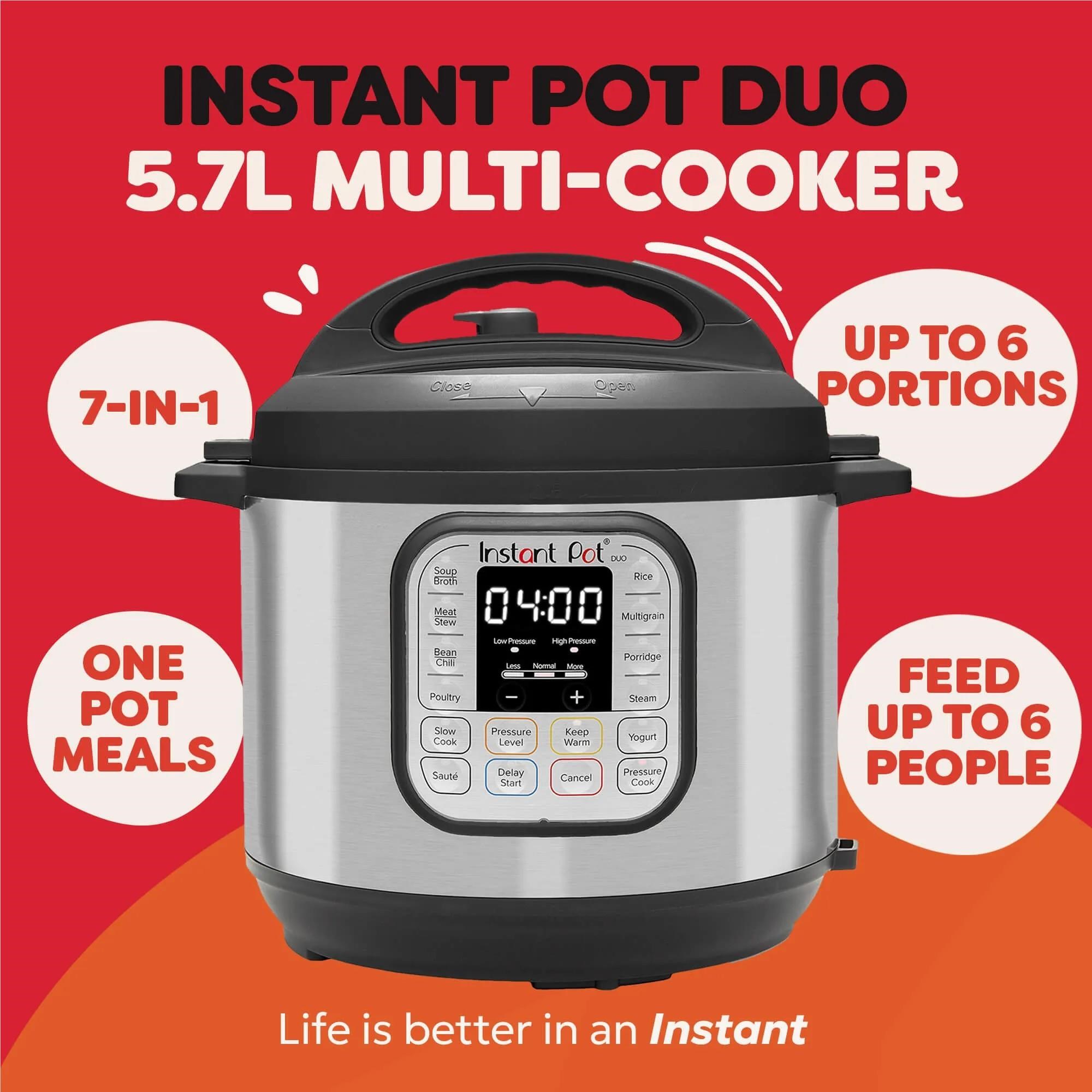 The Instant Pot® Duo™ 5.7L is designed to make cooking simple. easy and convenient. Rethink the way you cook. and step away from the stovetop. this do-it-all countertop appliance makes it easy to create one-pot meals with delicious results. Redefine cooking and enjoy quick and easy meals anywhere. any time.