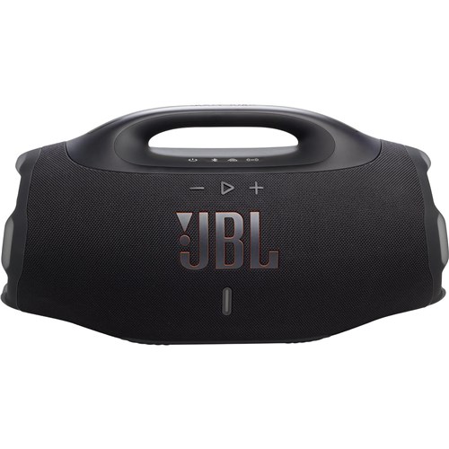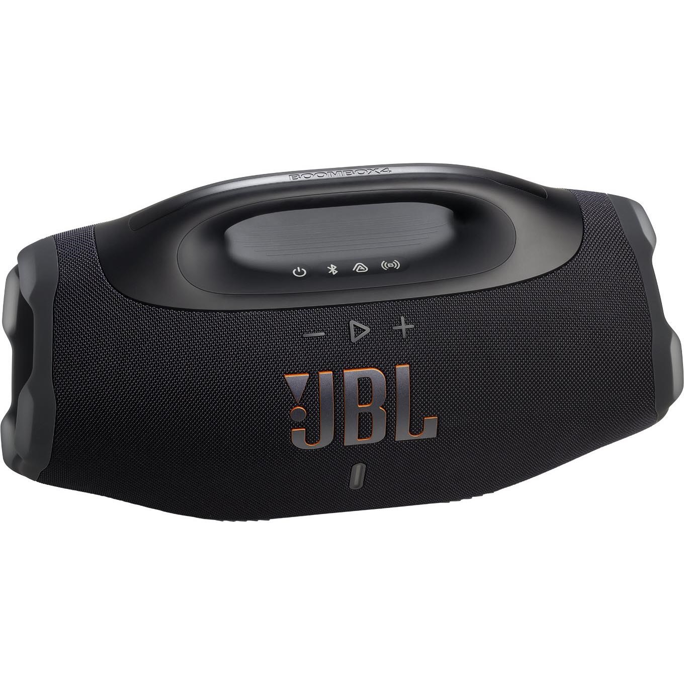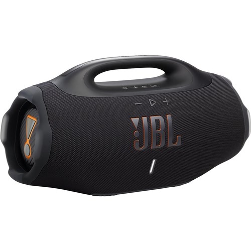 The all-new JBL Boombox 4 is bigger. bolder. and better than ever. with powerful JBL Pro Sound that stays loud and clear. with deep thumping bass. AI Sound Boost analyses our music in real time and adjusts the sound to give us more power with less distortion. even when we turn it all the way up. It packs two bigger woofers. two tweeters and three passive radiators. so every track hits harder and sounds cleaner. When we want to fine-tune the vibe. we just switch between deep or vibrant punchy Bass Boost settings to match our mood. We gave the classic Boombox design a fresh upgrade—it’s larger but lighter. so we can take it wherever the party goes: the beach. the block. or the backyard. It’s IP68 waterproof and dustproof. so weather’s never a dealbreaker. And. with up to 34 hours of playtime (thanks. Playtime Boost). we’re set for the long haul. With the JBL Boombox 4. we carry the mood and the energy. everywhere we go.